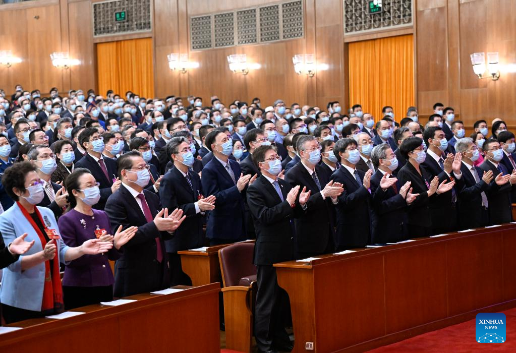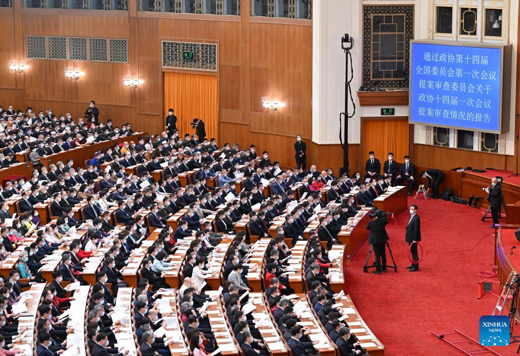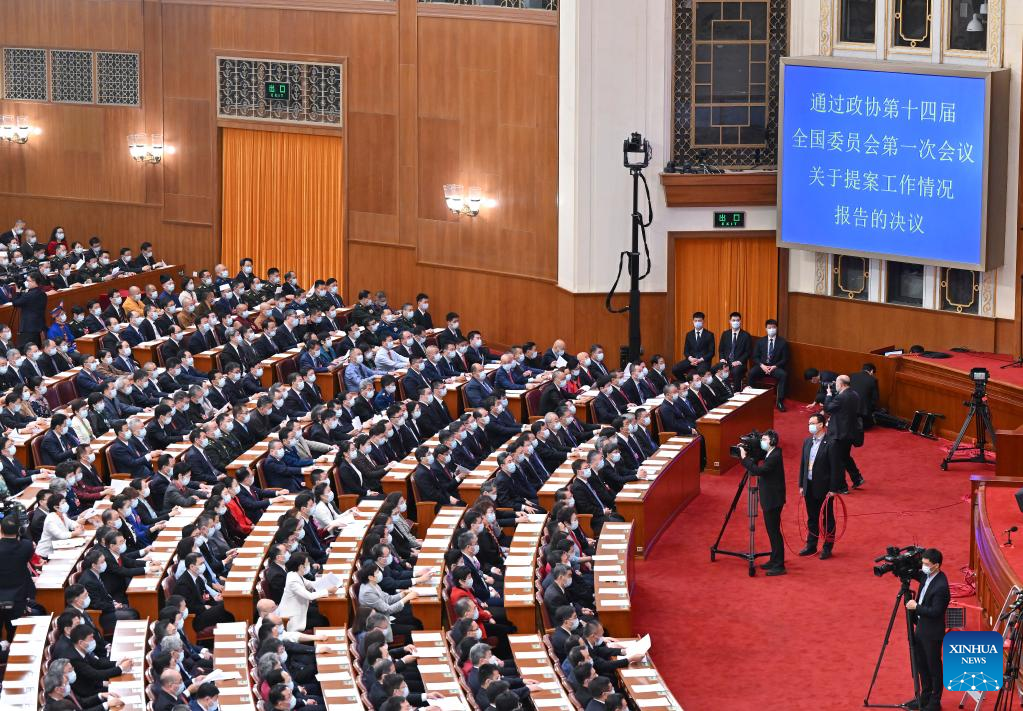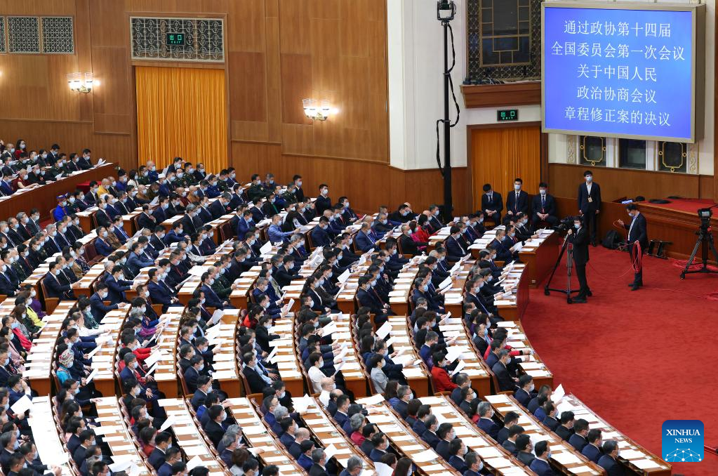 11日、北京の人民大会堂で開かれた政協第14期全国委員会第1回会議の閉幕会議。(北京=新華社記者/程婷婷)