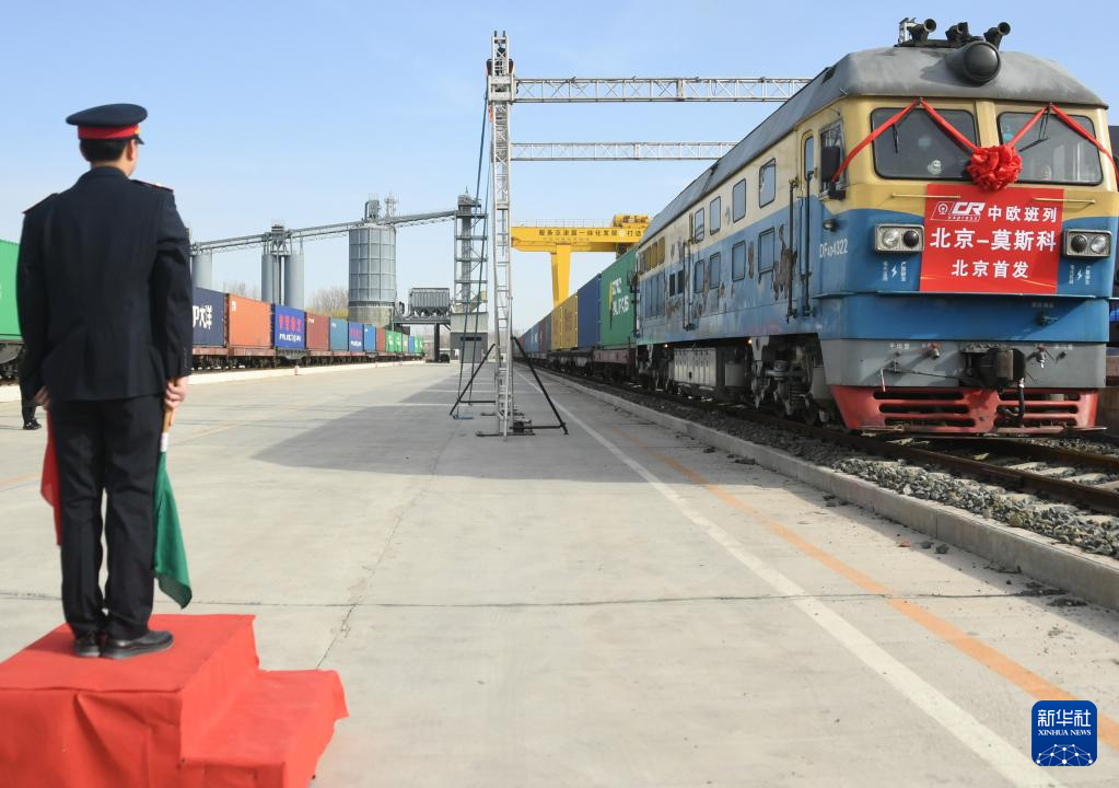 【新華社北京3月19日】中国北京市の平谷地方鉄道・馬坊駅で16日、建材や家電、アパレルなどを載せた「中欧班列」(中国-欧州間の国際貨物列車)がロシアのモスクワに向け出発した。欧州直通の中欧班列が北京を出発するのは初めて。