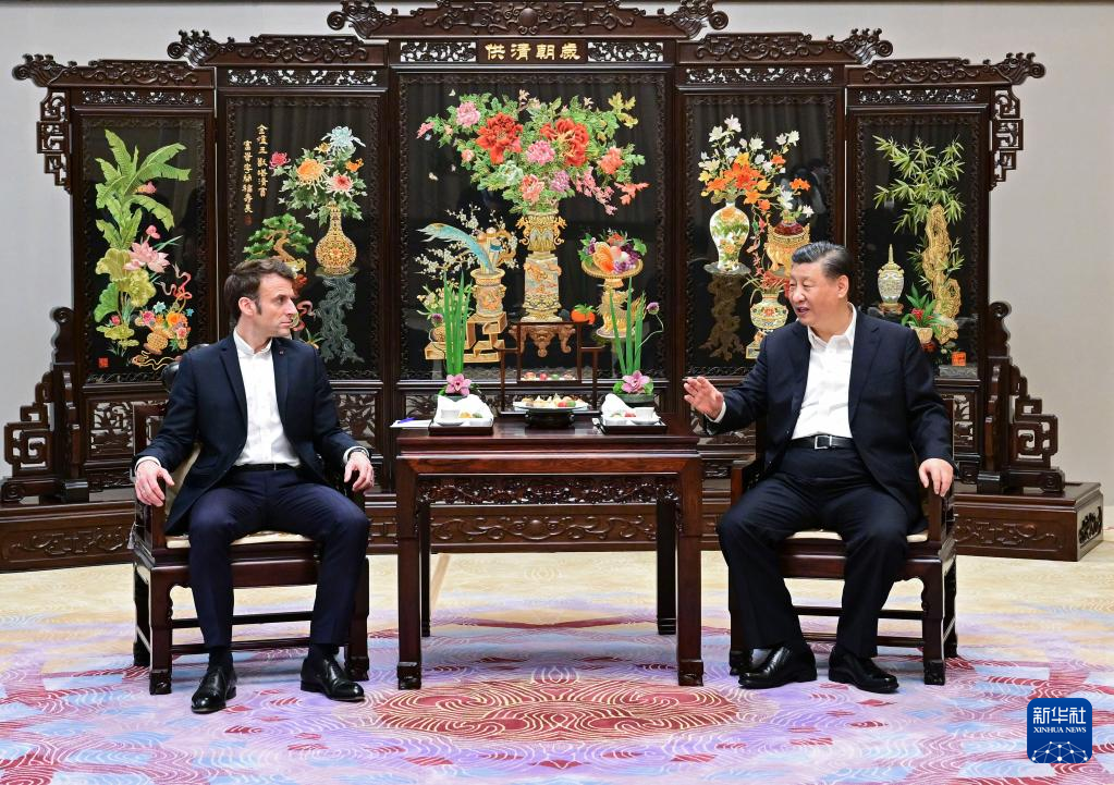 【新華社広州4月8日】中国の習近平(しゅう・きんぺい)国家主席は7日午後、広東省広州市の松園でフランスのマクロン大統領と非公式会談を行った。