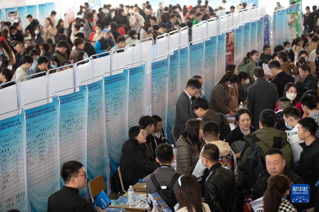 8日、就職説明会に参加した求職者。(ハルビン=新華社記者/張濤)