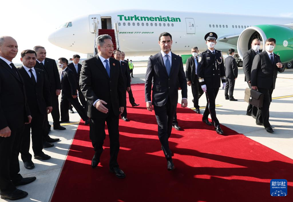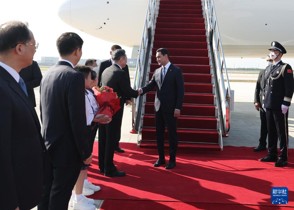 中国・中央アジアサミットに出席するトルクメニスタンのベルドイムハメドフ大統領が18日午前、陝西省西安市に到着した。(西安=新華社記者/邢広利)