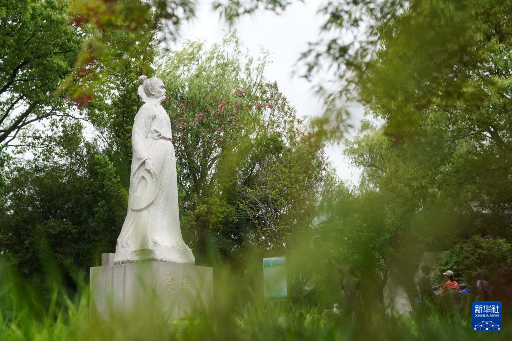 17日、徐霞客故居風景区の仰聖園に立つ徐霞客像。(南京=新華社記者/季春鵬)