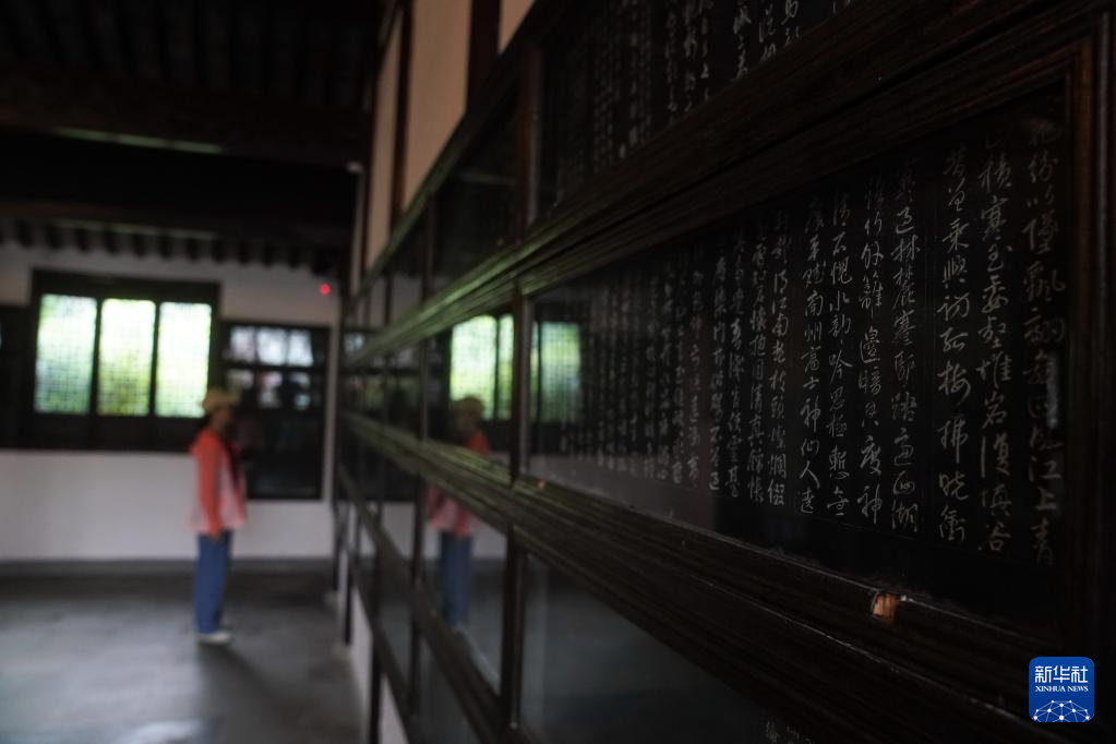 17日、徐霞客故居風景区の晴山堂で石刻を見る人。(南京=新華社記者/季春鵬)pagebreak