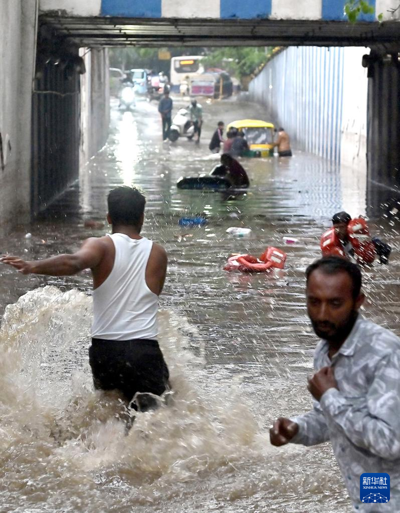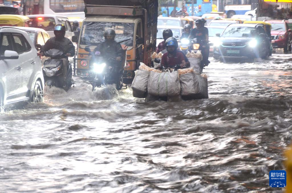 【新華社ベンガルール5月23日】インド南部ベンガルールでは、豪雨により一部地域が冠水し、人々の移動に支障が出た。pagebreak