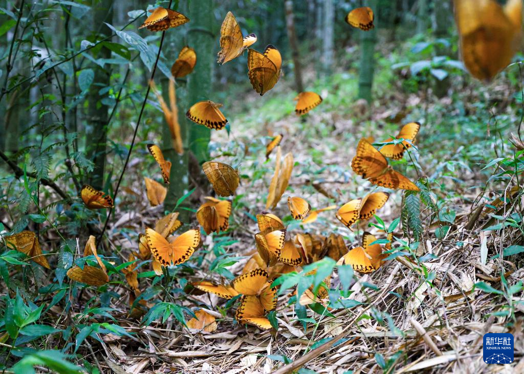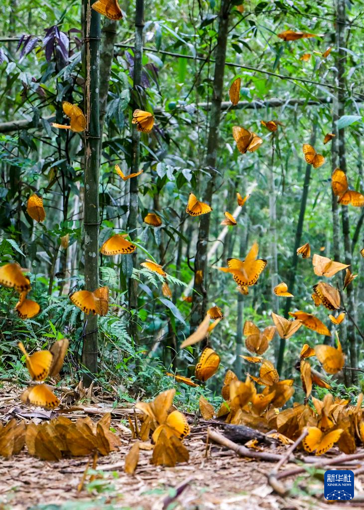 【新華社昆明5月30日】中国雲南省紅河ハニ族イ族自治州金平ミャオ族ヤオ族ダイ族自治県にある「中国紅河蝴蝶谷」でこのほど、ワモンチョウのサナギが一斉に羽化し、1年に1度の珍しい光景が広がった。今年は計8千万から1億匹ほどが羽化すると見込まれている。pagebreak