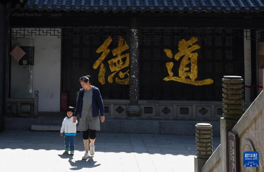23日、江蘇省句容市の茅山風景区にある九霄万福宮を見学する観光客。(句容=新華社記者/季春鵬)pagebreak