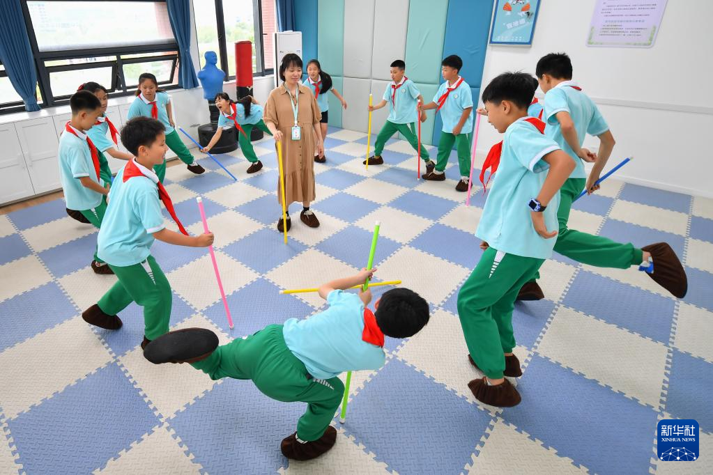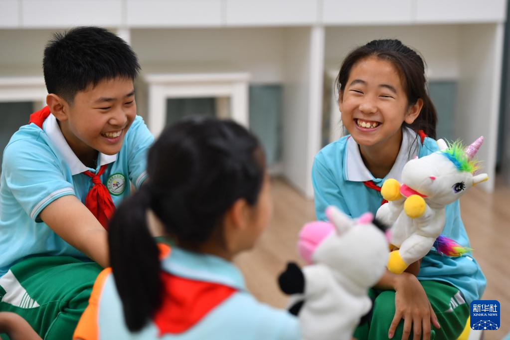 5月31日、長沙市岳麓区実験小学校の「心語花渓」心理成長センターで、サイコドラマ(心理劇)に参加する児童。(長沙=新華社記者/陳沢国)