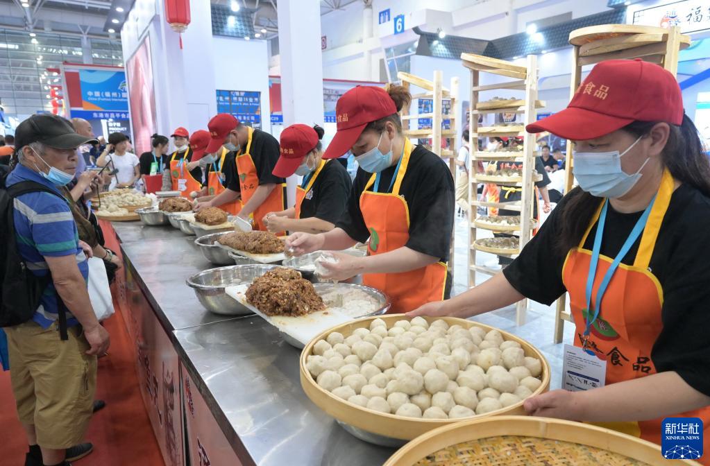 2日、博覧会の会場で「福州魚丸(つみれ)」を作るスタッフ。(福州=新華社記者/林善伝)pagebreak