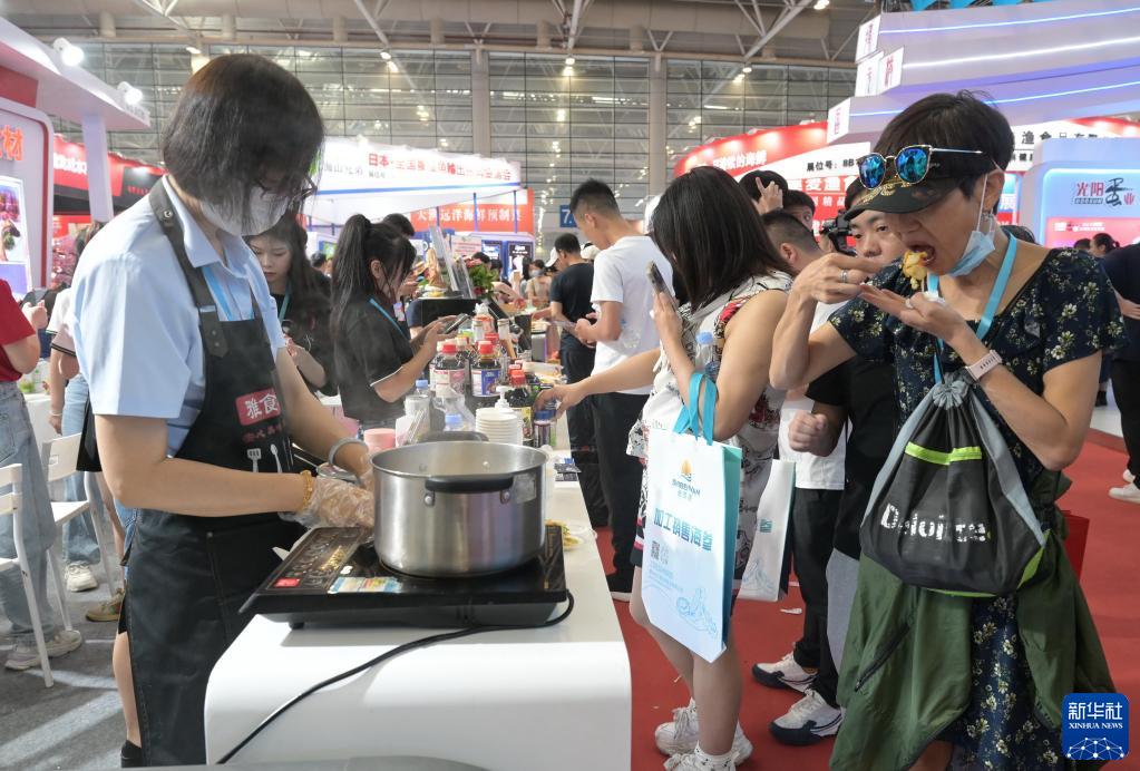 2日、博覧会の会場でグルメを味わう来場者。(福州=新華社記者/林善伝)pagebreak