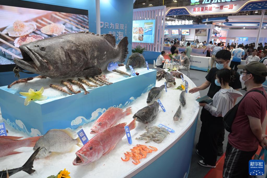 2日、博覧会の会場に展示されたさまざまな海産物。(福州=新華社記者/林善伝)