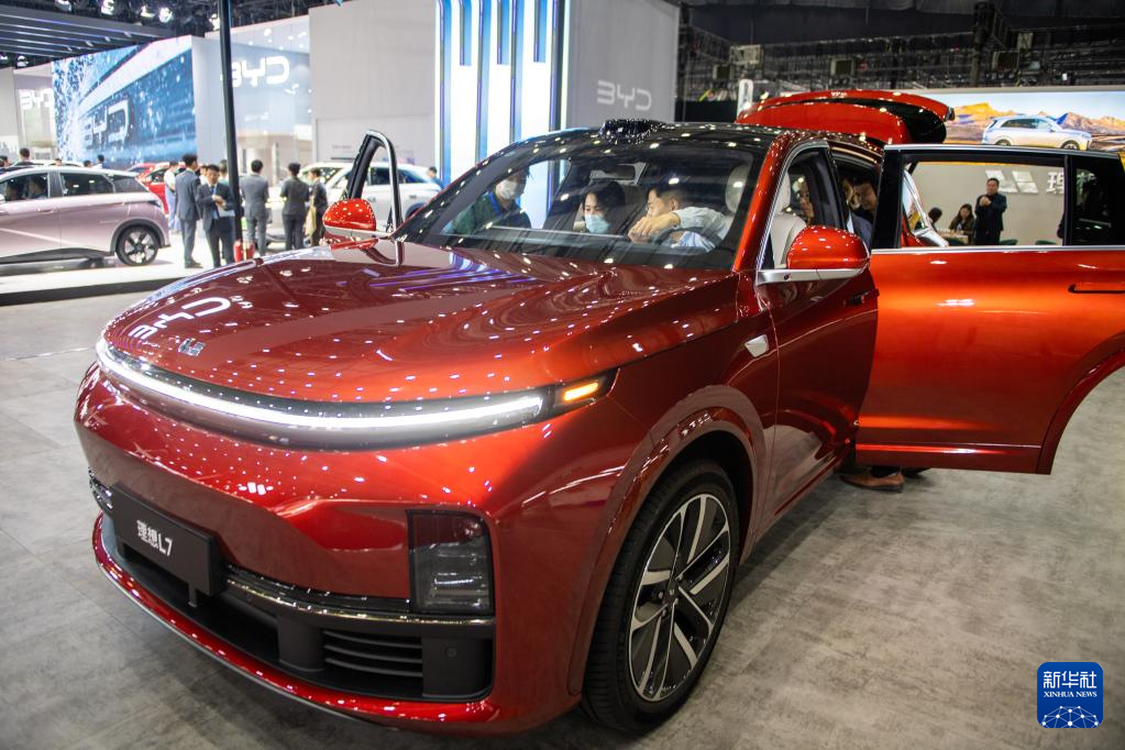 2023湖南モーターショーで展示された理想「L7」。(4月28日撮影、長沙=新華社記者/陳思汗)