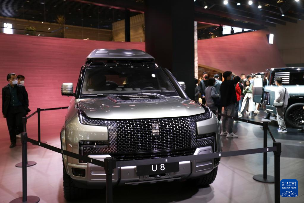 中国電気自動車(EV)大手、比亜迪(BYD)の大型スポーツタイプ多目的車(SUV)「仰望(YangWang)U8」。(4月25日撮影、上海=新華社記者/王翔)