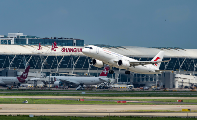 東方航空は2022年12月9日、C919の最初の顧客として1号機を受領。23年5月28日に初の往復商業フライトを完了した。1号機は今月12日までに87便運航され、1万1095人が利用した。平均搭乗率は8割近くに上り、商用運航時間は250時間を超えた。