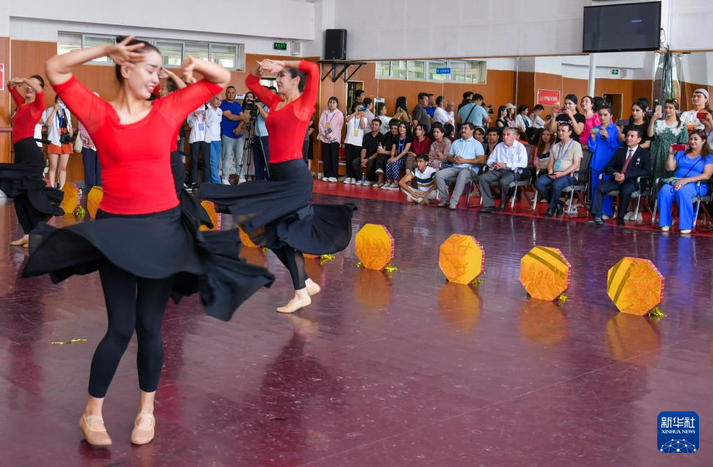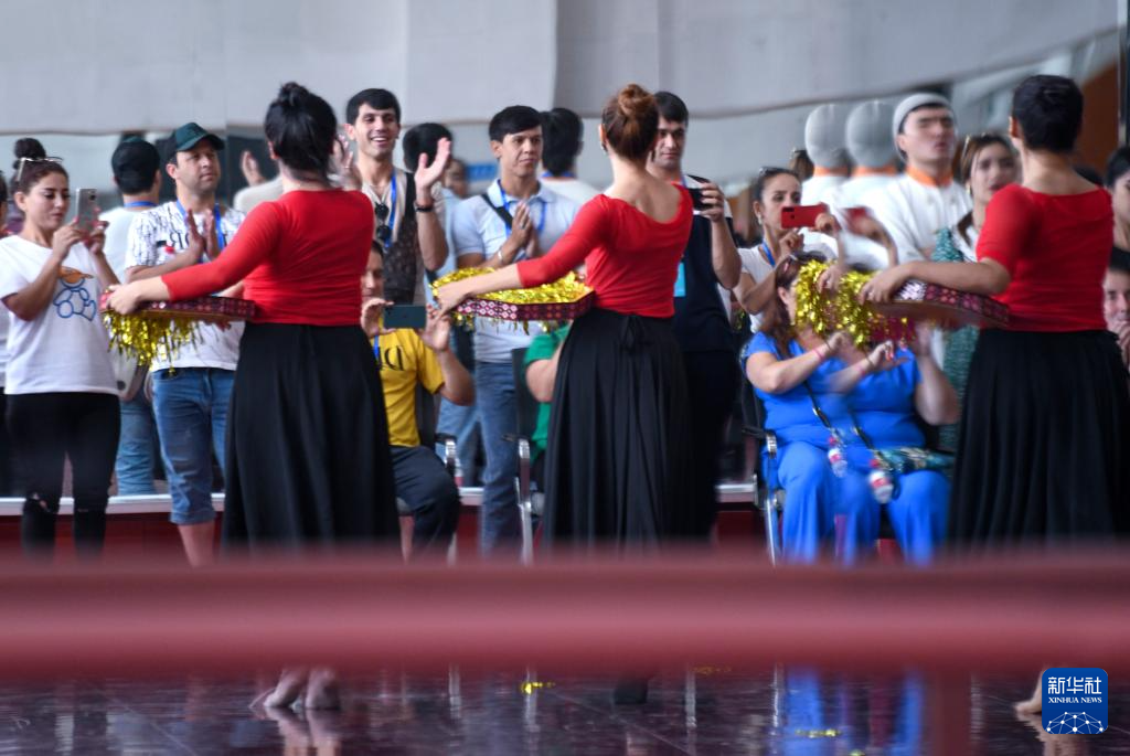 【新華社ウルムチ8月1日】第6回中国新疆国際民族舞踊祭が7月20日から新疆ウイグル自治区ウルムチ市で開かれている。舞踊祭に参加するタジキスタン国立舞踊団「ローラ」が31日、市内の新疆芸術劇院で同劇院のメンバーと音楽やダンスの交流を行った。pagebreak