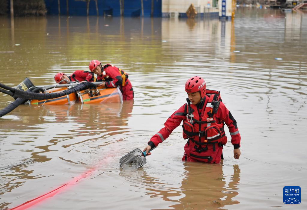 【新華社涿州8月8日】中国河北省消防救援総隊はここ数日、隊員800人余りを動員し、涿州(たくしゅう)市内の浸水被害地区で排水作業にあたらせている。隊員らは被災地の一日も早い生産・生活の正常化に向け、連日奮闘している。pagebreak