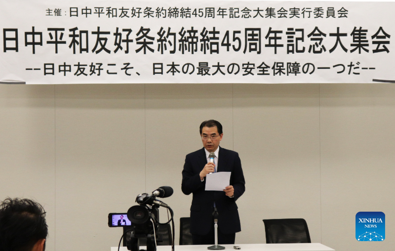 10日、東京で開かれた中日平和友好条約締結45周年記念集会。(東京=新華社記者/楊光)