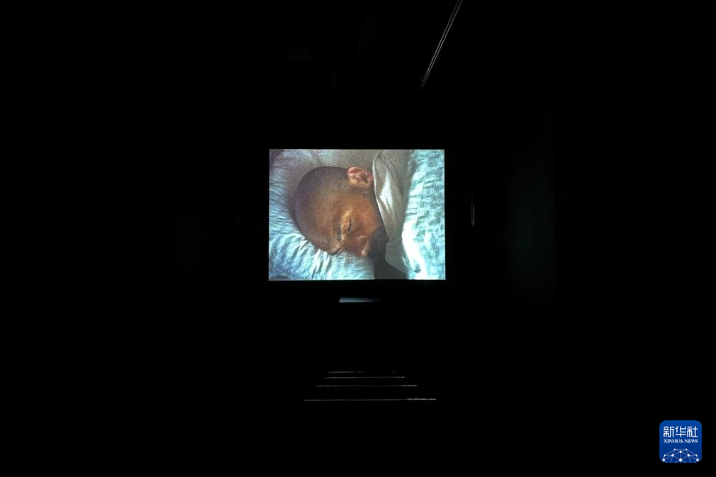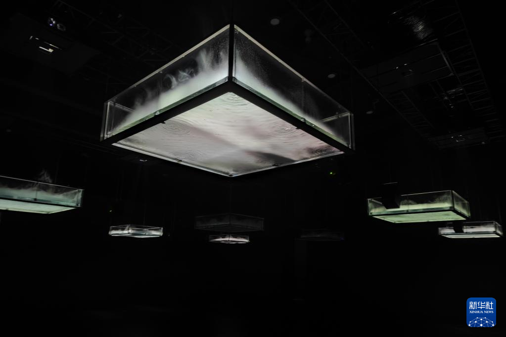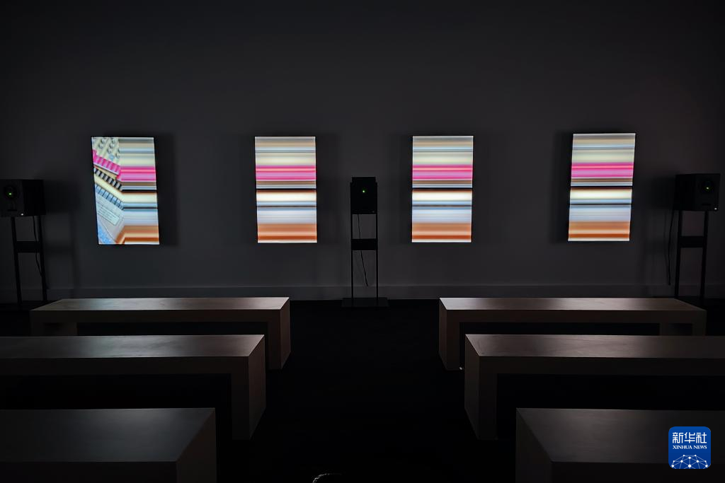 22日、坂本龍一氏の展覧会「一音一時」で展示された作品。(成都=新華社配信/石一潔)