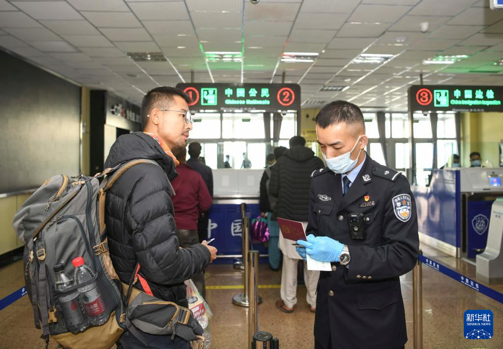 8月29日、新疆出入境辺防検査総站所属のクンジュラブ辺防検査站で、パスポートをチェックする警察官。(タシュクルガン=新華社記者/胡虎虎)
