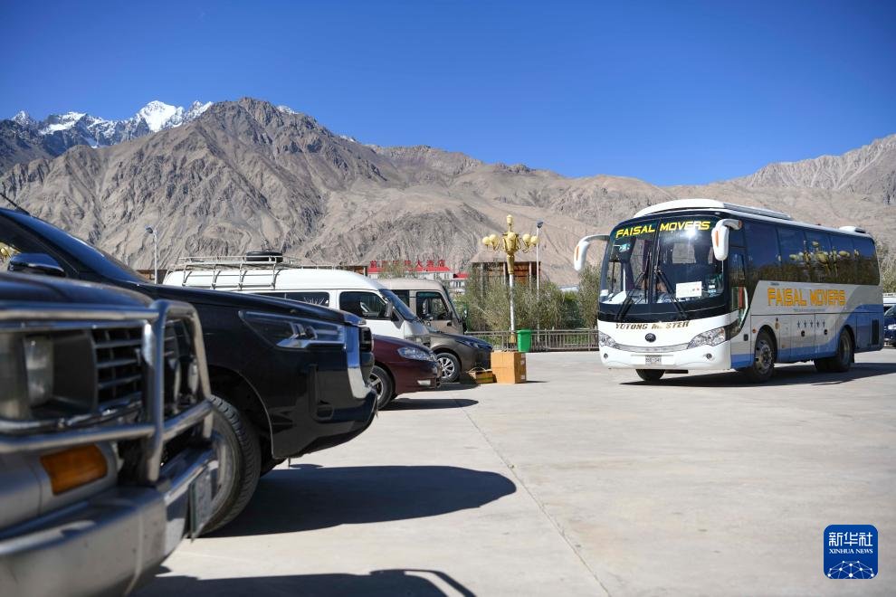8月29日、新疆クンジュラブ口岸に入るパキスタンから来たバス。(タシュクルガン=新華社記者/胡虎虎)pagebreak