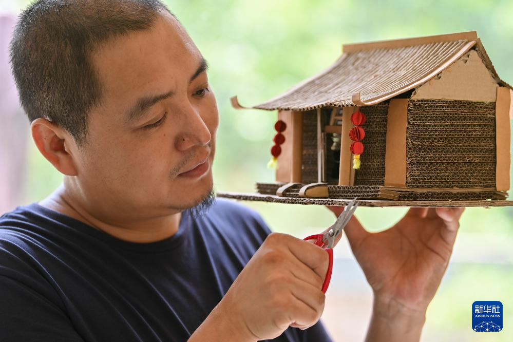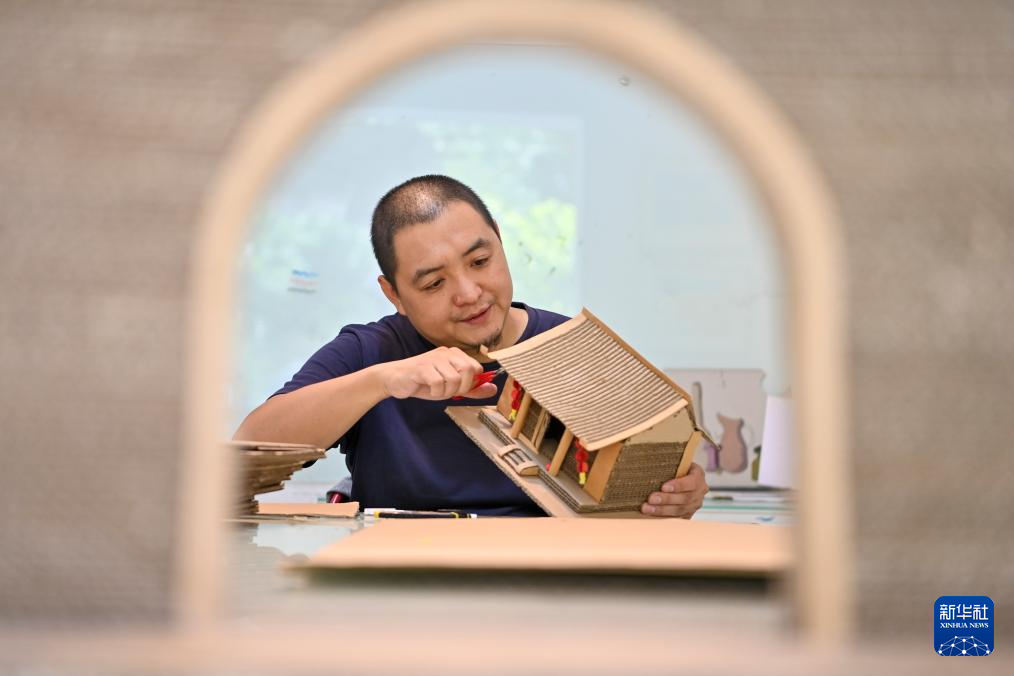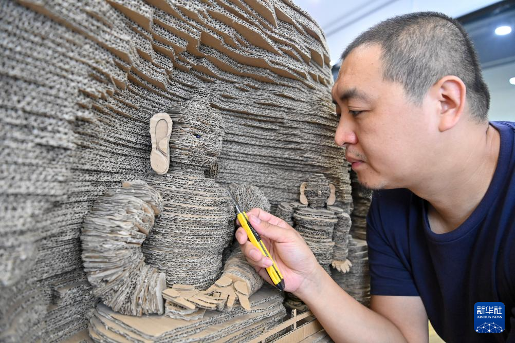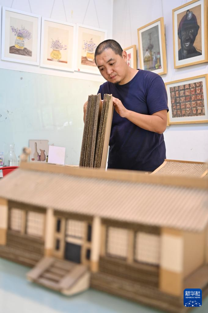 【新華社太原9月4日】中国山西省の紙工芸職人の家に生まれた王帥棟(おう・すいとう)さん(39)は、遼寧省の魯迅美術学院を卒業後、自ら学んだ装飾芸術デザインの専門知識と家族の伝統技術を融合し、段ボールを使った創作活動を始めた。