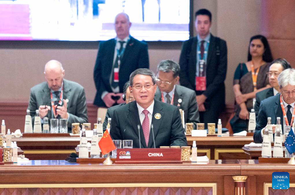 9日、G20首脳会議で演説する李強国務院総理。(ニューデリー=新華社記者/李濤)
