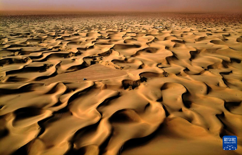 7日、マルキト県の北緯39度砂漠風景区に広がる景色。(小型無人機から、カシュガル=新華社記者/李安)