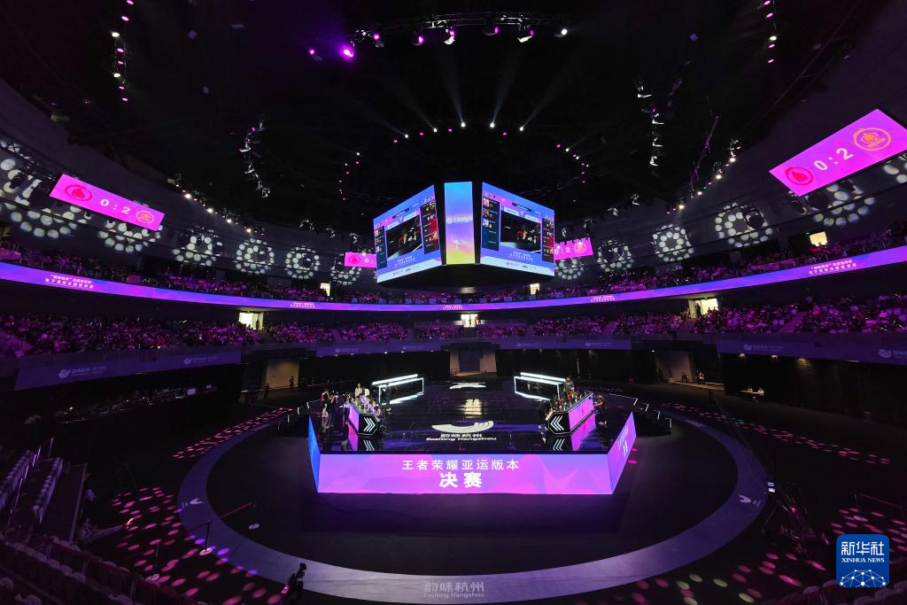 浙江省杭州市の杭州eスポーツセンターで行われた、「韻味杭州」eスポーツ全国招待大会の「王者栄耀」(アジア大会専用バージョン)決勝戦の様子。(5月21日撮影、杭州=新華社記者/黄宗治)