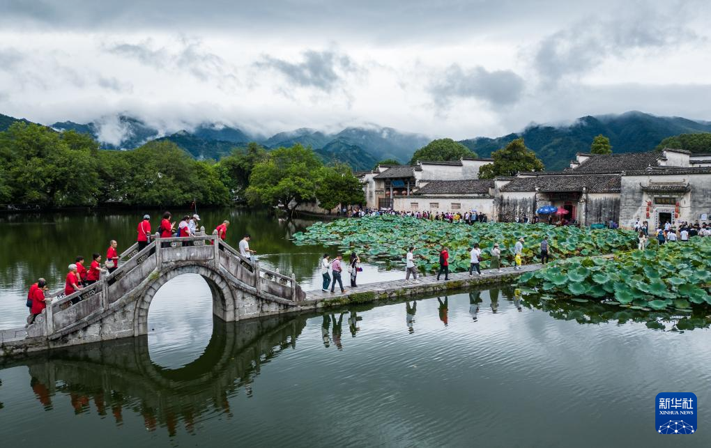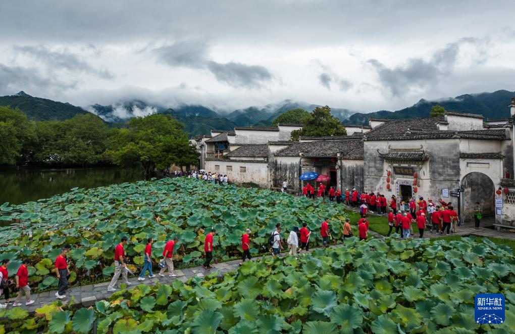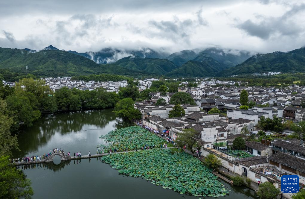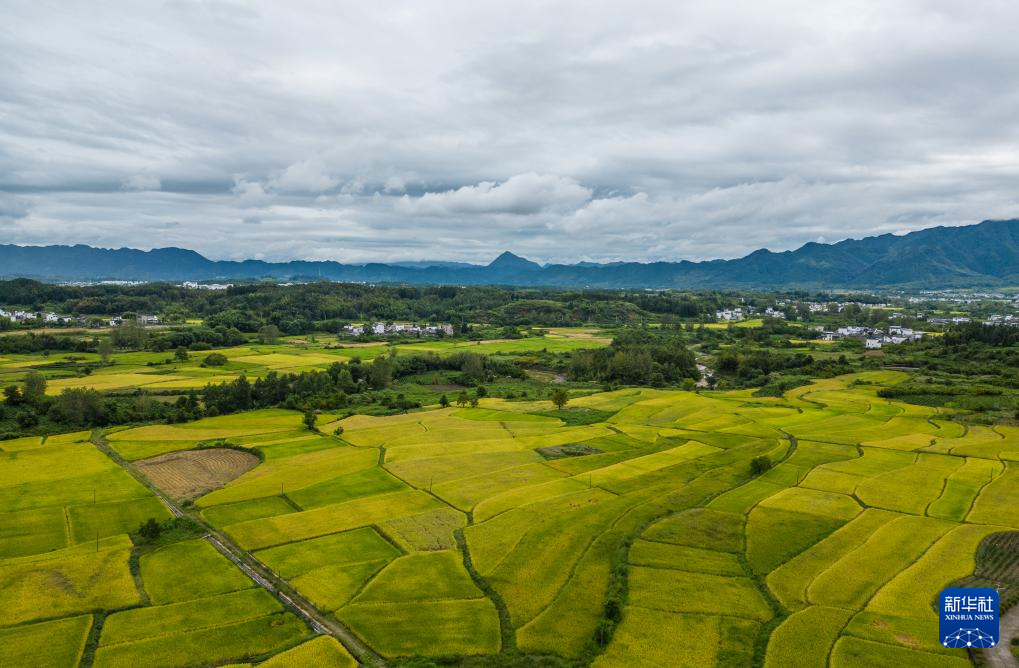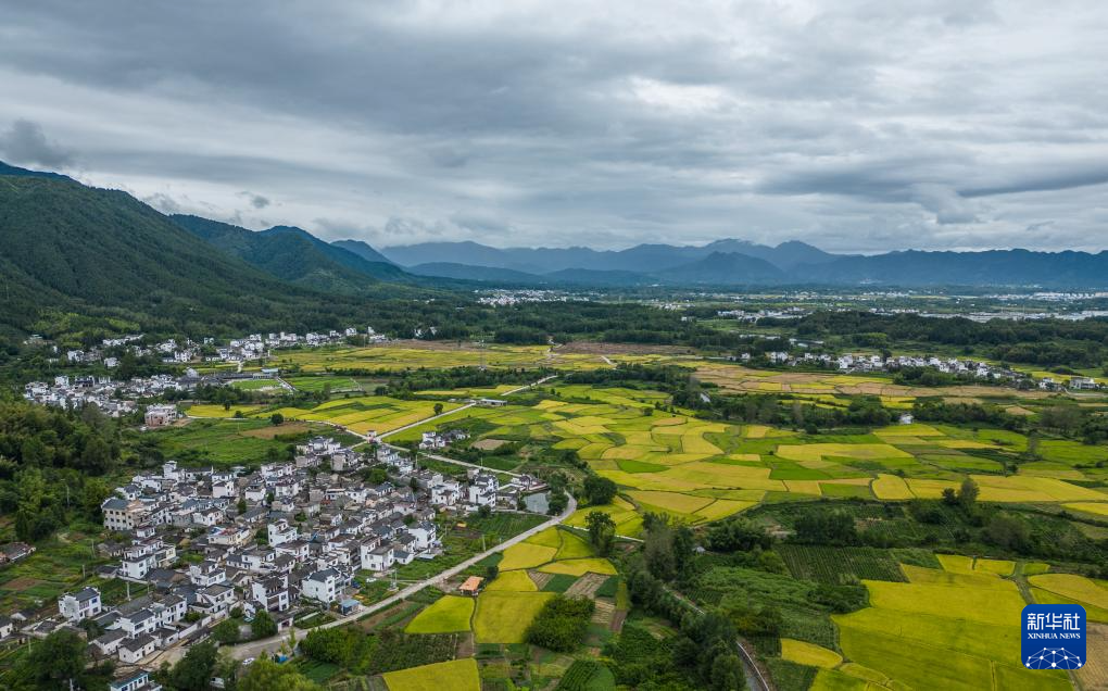 【新華社黄山9月16日】中国安徽省黄山市黟(い)県では雨の中、伝統建築や山々、水田などが山水画のような美しさを見せた。