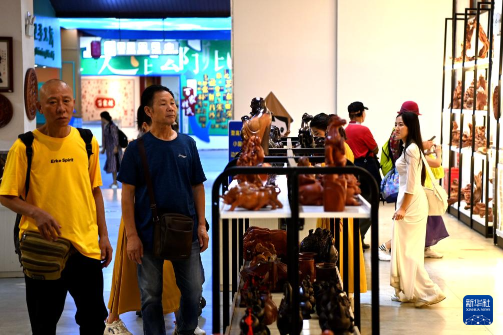 15日、中越国境の徳天瀑布(バンゾック滝)観光協力区で商品を選ぶ観光客。(南寧=新華社記者/曹禕銘)
