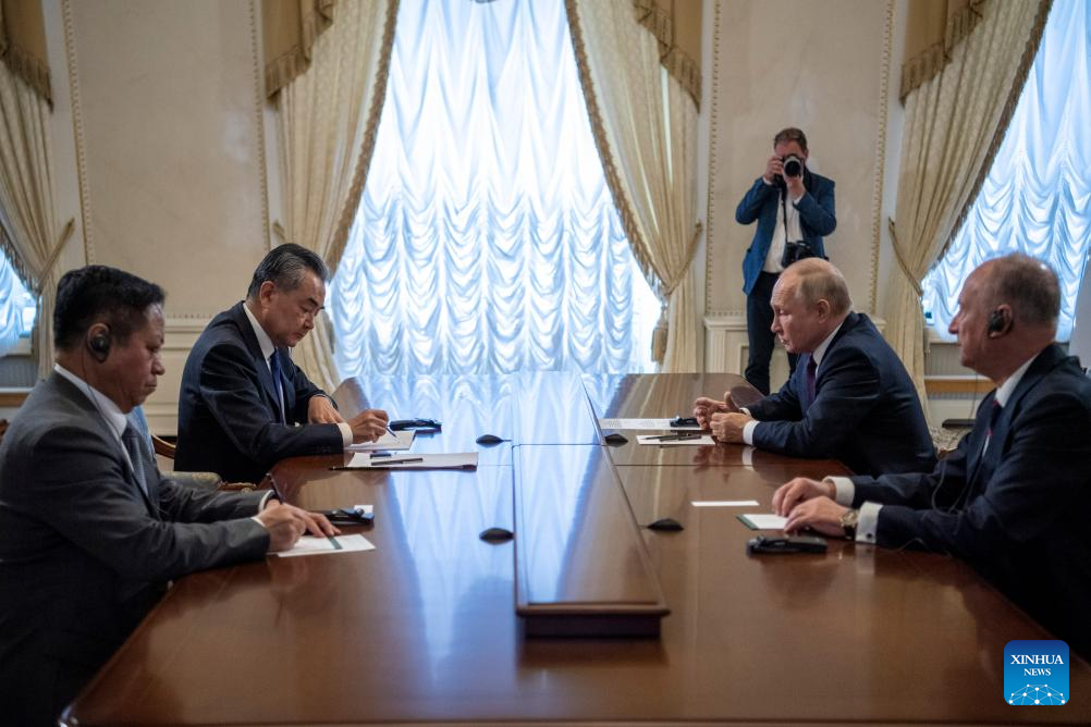 【新華社サンクトペテルブルク9月21日】ロシアのプーチン大統領は20日、サンクトペテルブルクで中国の王毅(おう・き)共産党中央政治局委員・中央外事工作委員会弁公室主任と会談した。