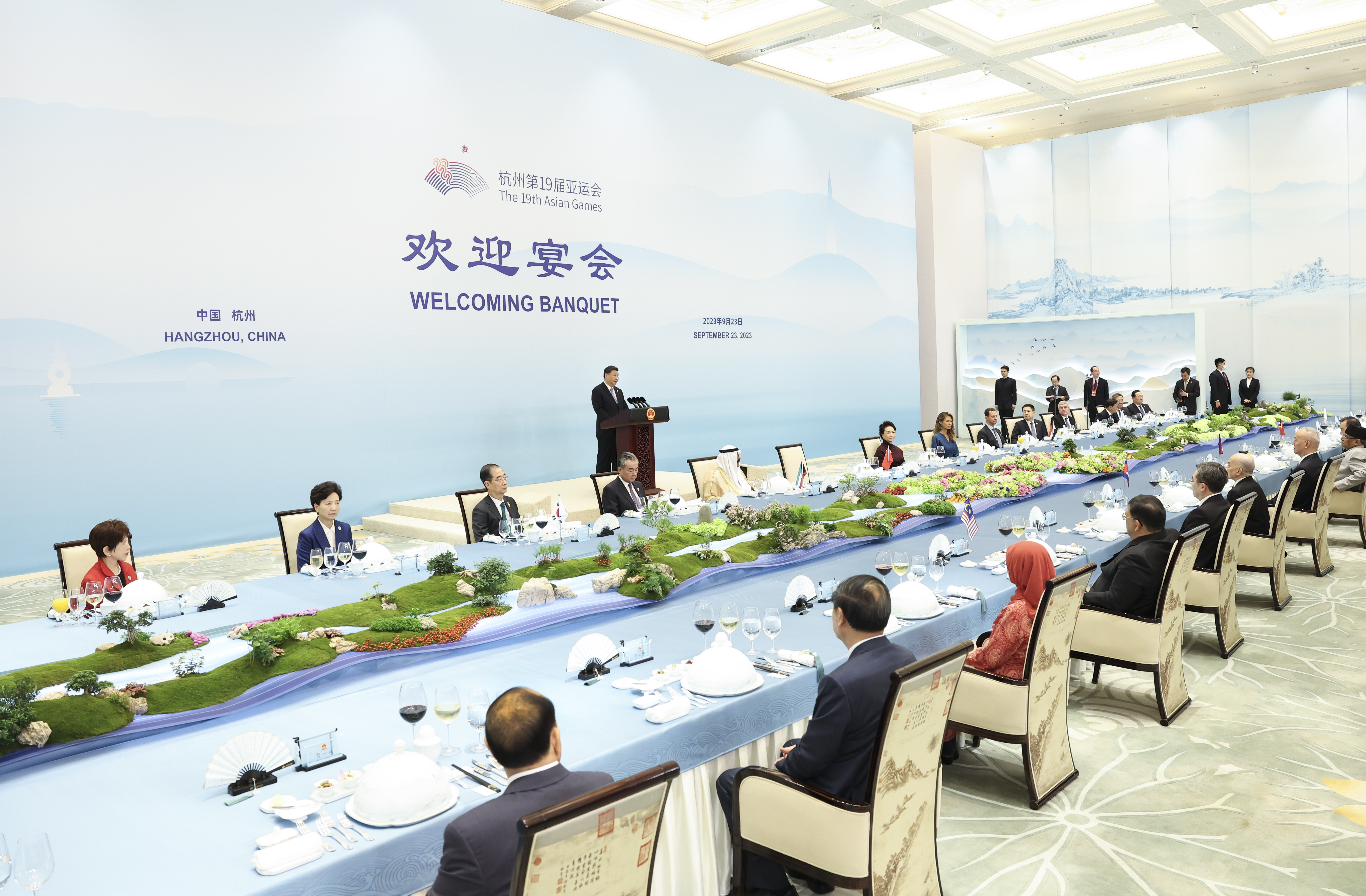 【新華社杭州9月23日】中国の習近平(しゅう・きんぺい)国家主席と彭麗媛(ほう・れいえん)夫人は23日、浙江省杭州市の西子賓館で第19回アジア競技大会(杭州アジア大会)の開会式出席のため訪中した各国と国際機関からの来賓を歓迎するレセプションを開いた。