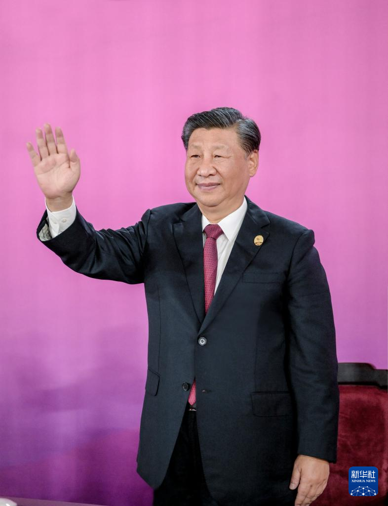 中国の習近平(しゅう・きんぺい)国家主席は23日夜、浙江省杭州市で行われた第19回アジア競技大会(杭州アジア大会)の開会式に出席し、開会を宣言した。写真は手を振ってあいさつする習近平氏。(杭州=新華社記者/李学仁)