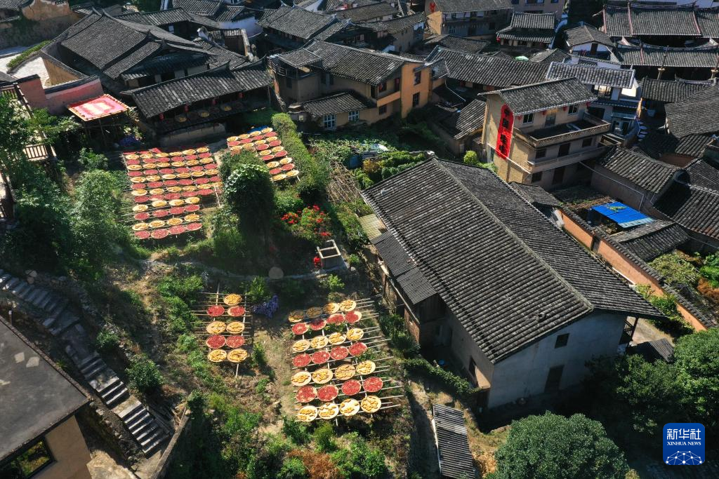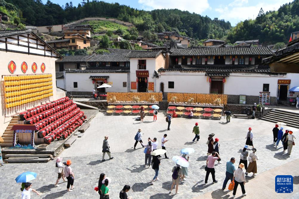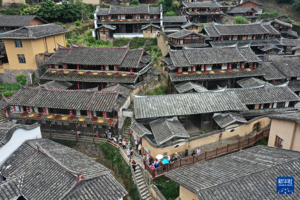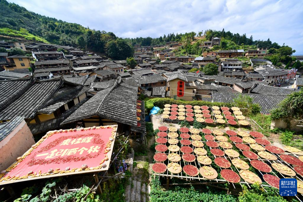 【新華社三明9月25日】中国の歴史文化名村に指定されている福建省三明市尤渓(ゆうけい)県桂峰村で23日、年に一度の「晒秋(さいしゅう)」(収穫した農作物の天日干し)文化祭が行われ、多くの観光客を引き付けた。pagebreak