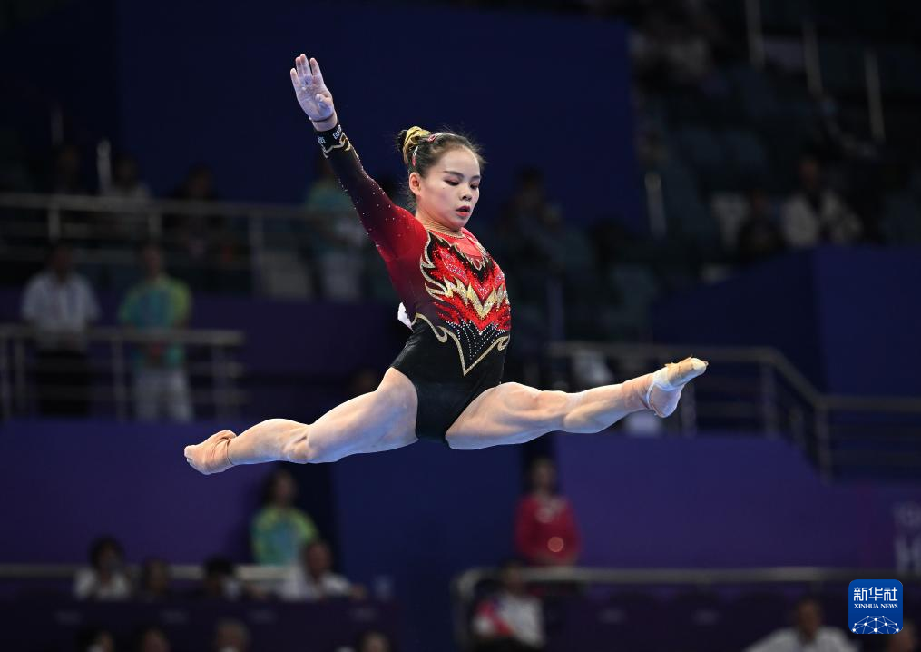 25日、床運動の演技に臨む中国の章瑾。(杭州=新華社記者/程敏)
