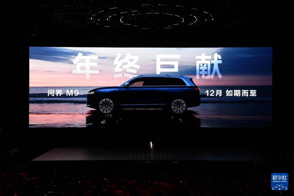 25日、新製品発表会で披露された「問界(AITO)M9」。(深圳=新華社記者/梁旭)