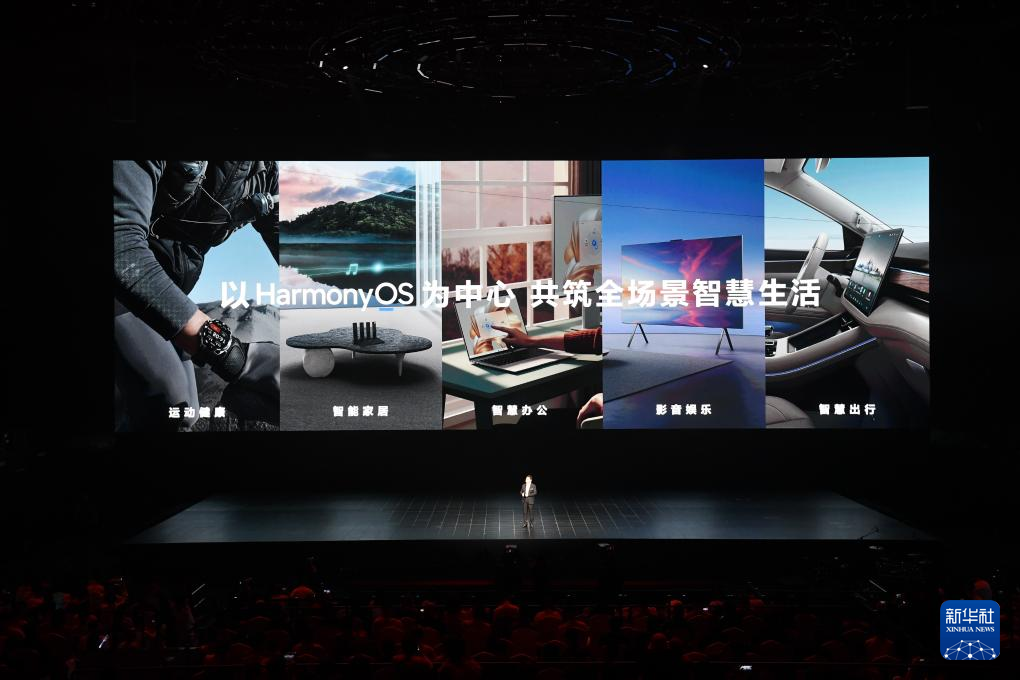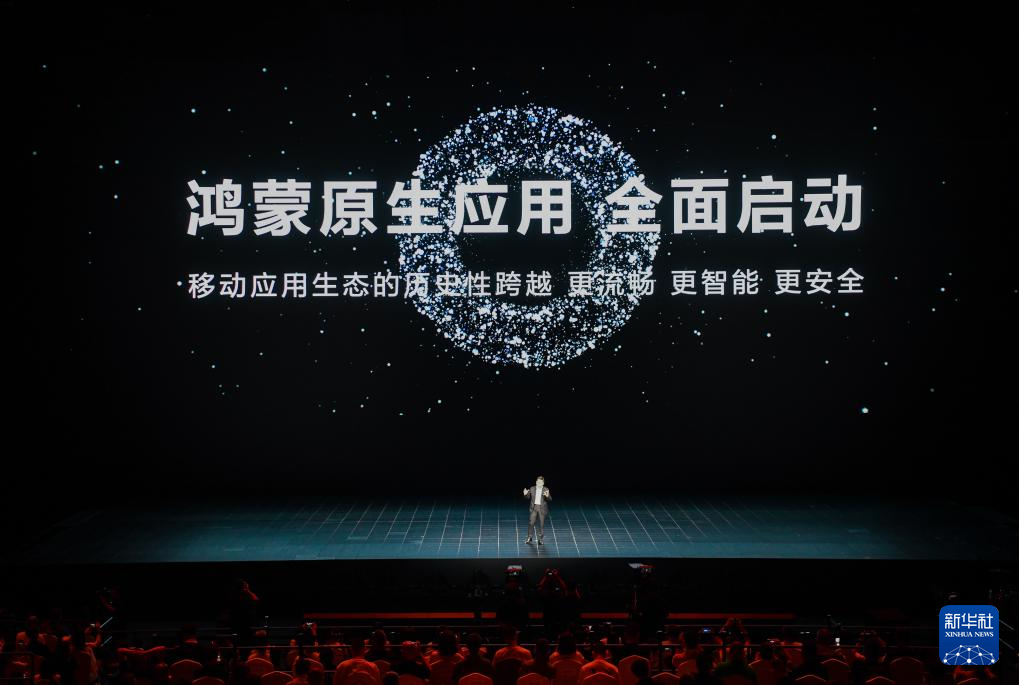 25日、新製品発表会で披露された「鴻蒙(ホンモン、Harmony)」の新バージョン「HarmonyOS NEXT」。(深圳=新華社記者/梁旭)