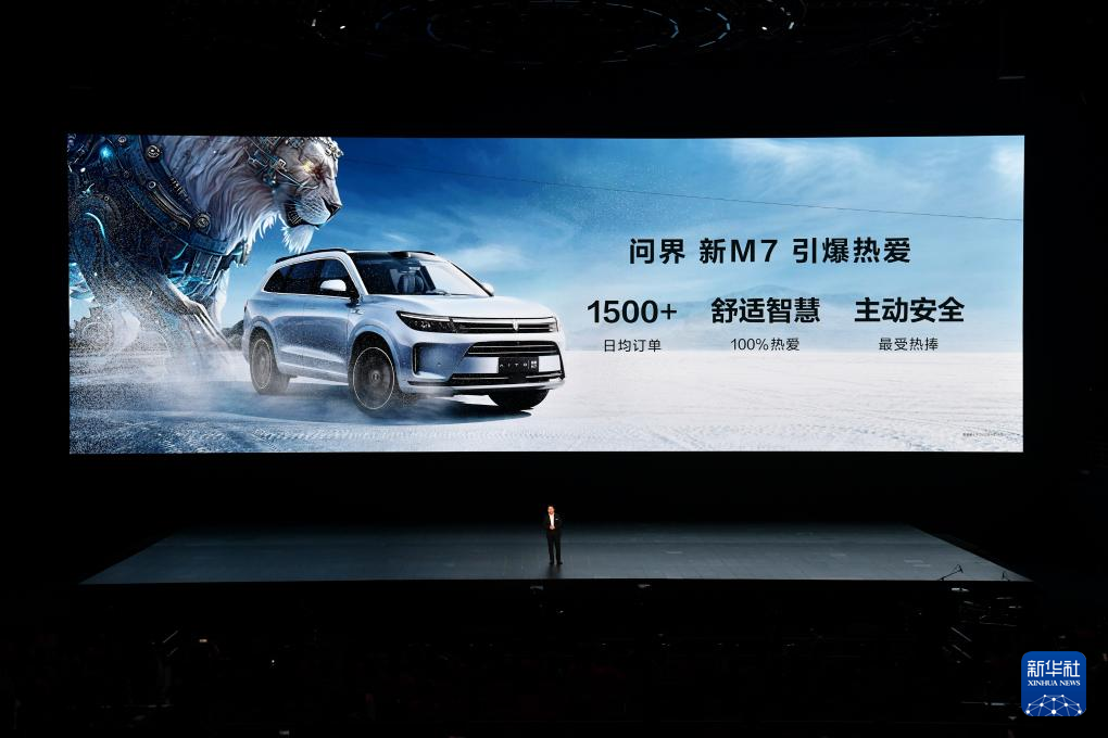 25日、新製品発表会で披露された「問界(AITO)M7」。(深圳=新華社記者/梁旭)