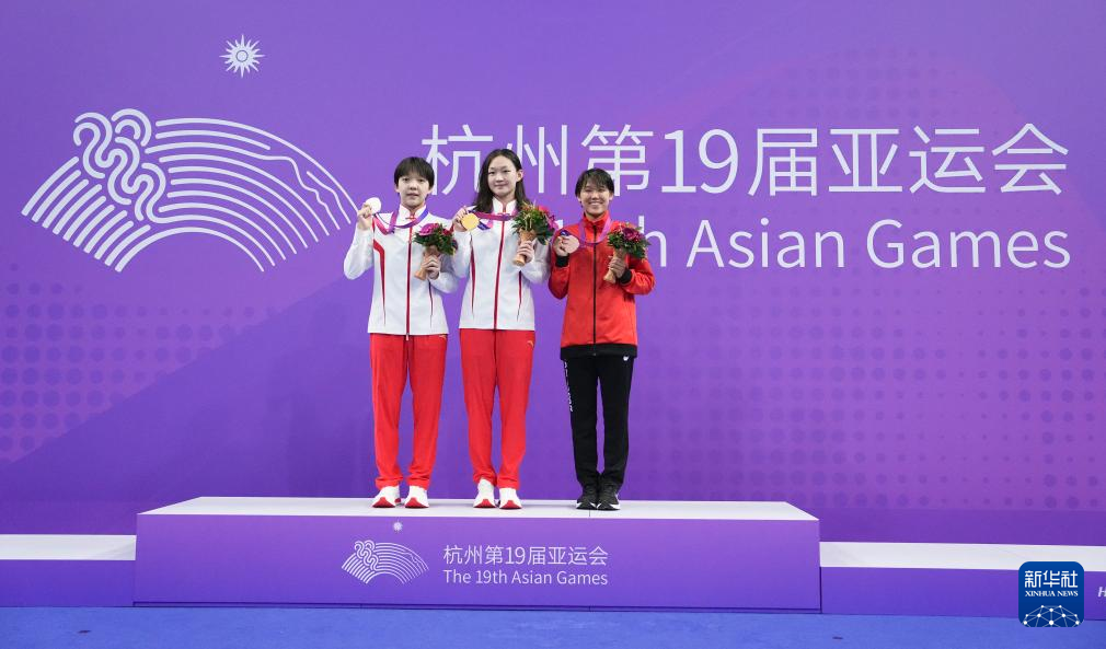 【新華社杭州9月27日】第19回アジア競技大会(杭州アジア大会)は26日、浙江省にある杭州オリンピックスポーツセンターの水泳館で競泳女子400メートル自由形決勝が行われ、中国の李氷潔(り・ひょうけつ)が金メダル、馬永慧(ば・えいけい)が銀メダルを獲得した。銅メダルは日本の小堀倭加が獲得した。pagebreak