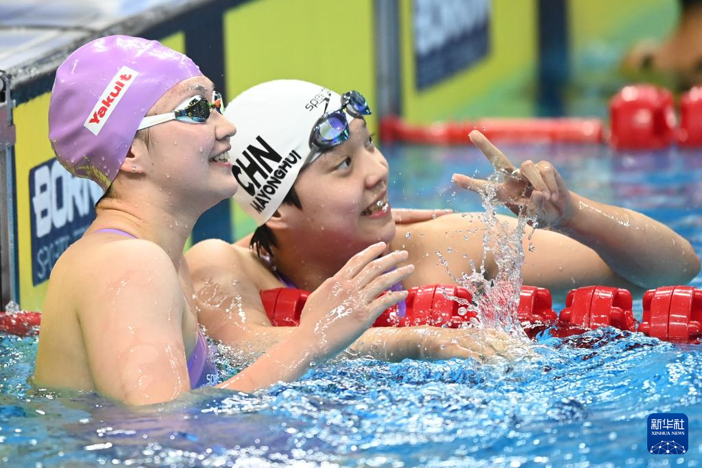 26日、レース後の李氷潔(左)と馬永慧。(杭州=新華社記者/黄宗治)