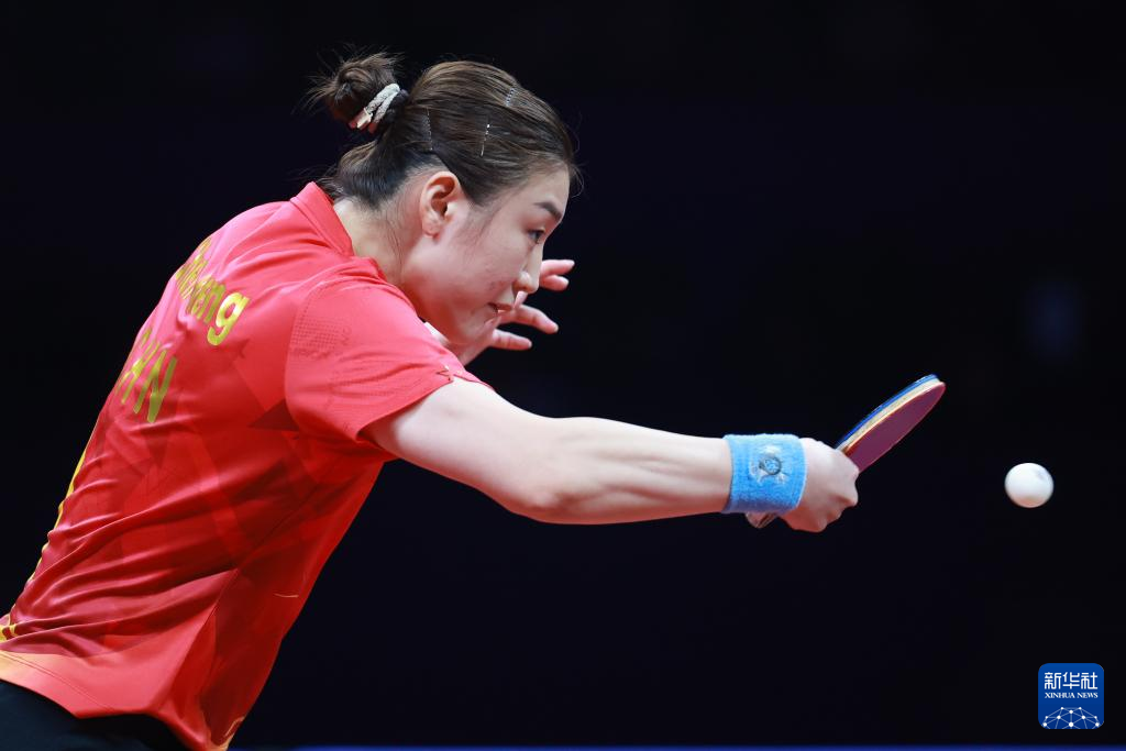 26日、決勝に臨む中国の孫穎莎(そん・えいさ)。(杭州=新華社記者/劉続)