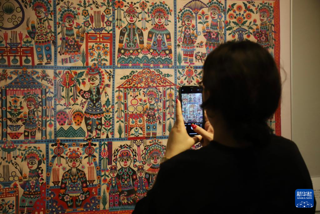 21日、庫淑蘭切り絵展の内覧会で作品を撮影する来場者。(東京=新華社記者/姜俏梅)