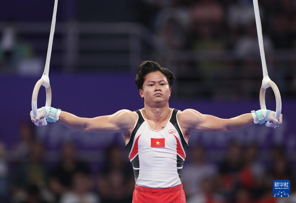 28日、つり輪の演技に臨むベトナムのグエン・バン・カイン・フォン。(杭州=新華社記者/程婷婷)pagebreak