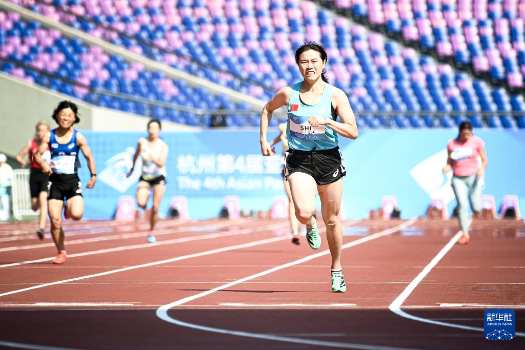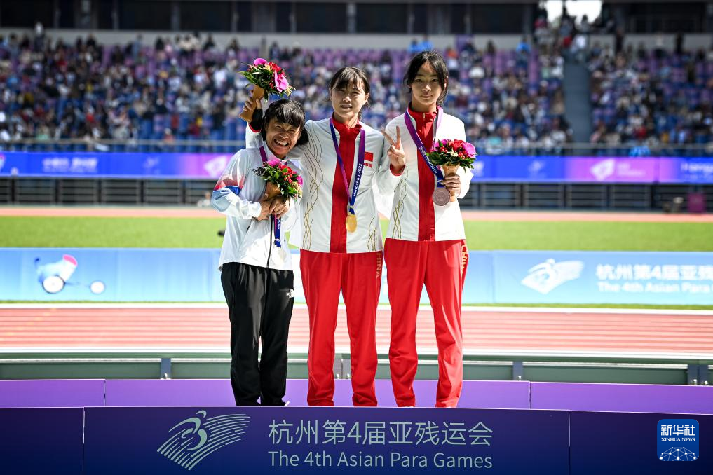 【新華社杭州10月24日】第4回アジアパラ競技大会(杭州アジアパラ)は23日、黄竜スポーツセンタースタジアムで陸上女子200メートルT36(脳性まひなど)の決勝が行われ、中国の史逸婷(し・いつてい)が28秒17の世界新記録で金メダルに輝いた。韓国の全珉彩(チョン・ミンチェ)は銀メダル、中国の李四双(り・しそう)は銅メダルを獲得した。pagebreak