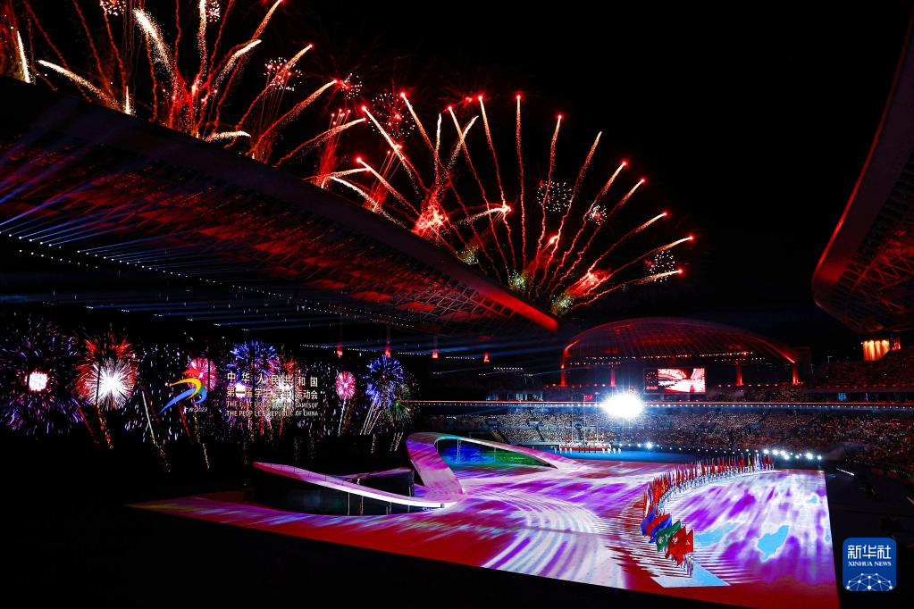 【新華社南寧11月6日】中国広西チワン族自治区南寧市にある広西スポーツセンターメインスタジアムで5日、第1回全国学生(青年)運動会の開会式が行われた。