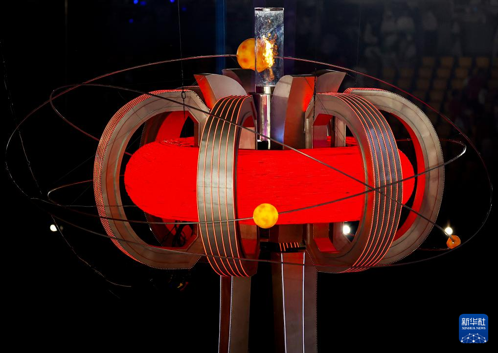 5日、開会式で点火された聖火台。(南寧=新華社記者/曹禕銘)