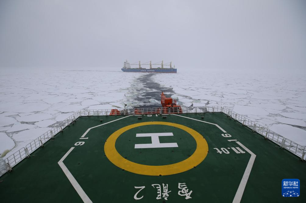 【新華社雪竜2号12月2日】中国の第40次南極科学観測を担う極地調査砕氷船「雪竜2号」と貨物船「天恵」は北京時間11月29日深夜、浮氷域に入った。2隻はすぐに氷海航行状態に移行、雪竜2号が砕氷を行って天恵の先導を開始した。
