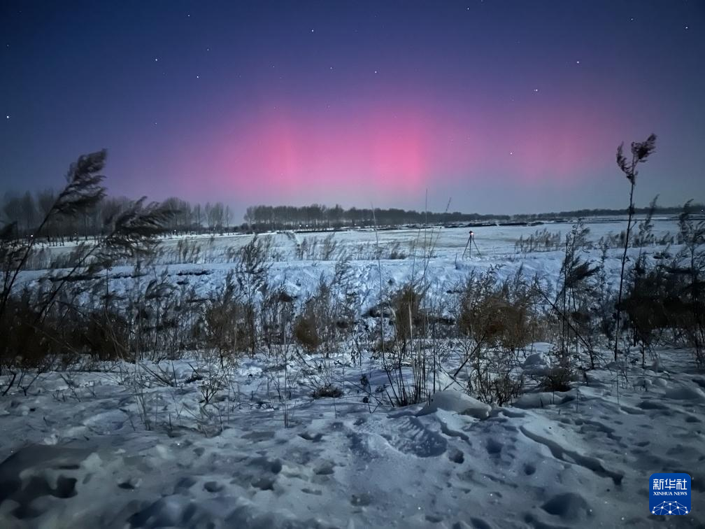 1日夜、黒竜江省佳木斯市で観測されたオーロラ。(ジャムス=新華社配信/陳志国)pagebreak