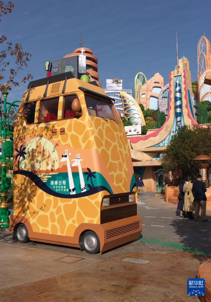 11月29日、上海ディズニーランド「ズートピア」エリアのタクシー。(上海=新華社記者/任瓏)