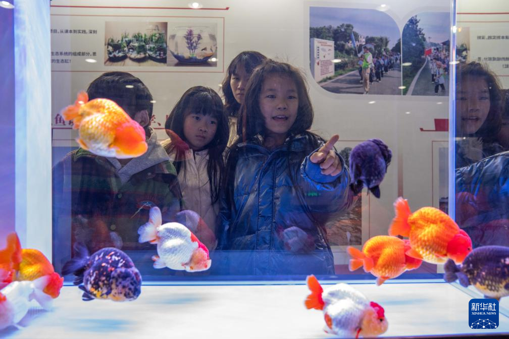 2日、長沙紅星国際会展中心で金魚を見る来場者。(長沙=新華社記者/陳思汗)pagebreak