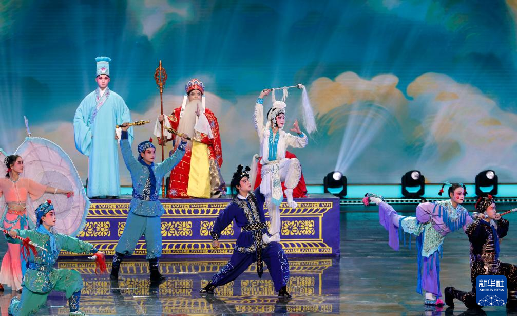 11月29日、戯曲舞踊を披露する俳優ら。(成都=新華社記者/沈伯韓)